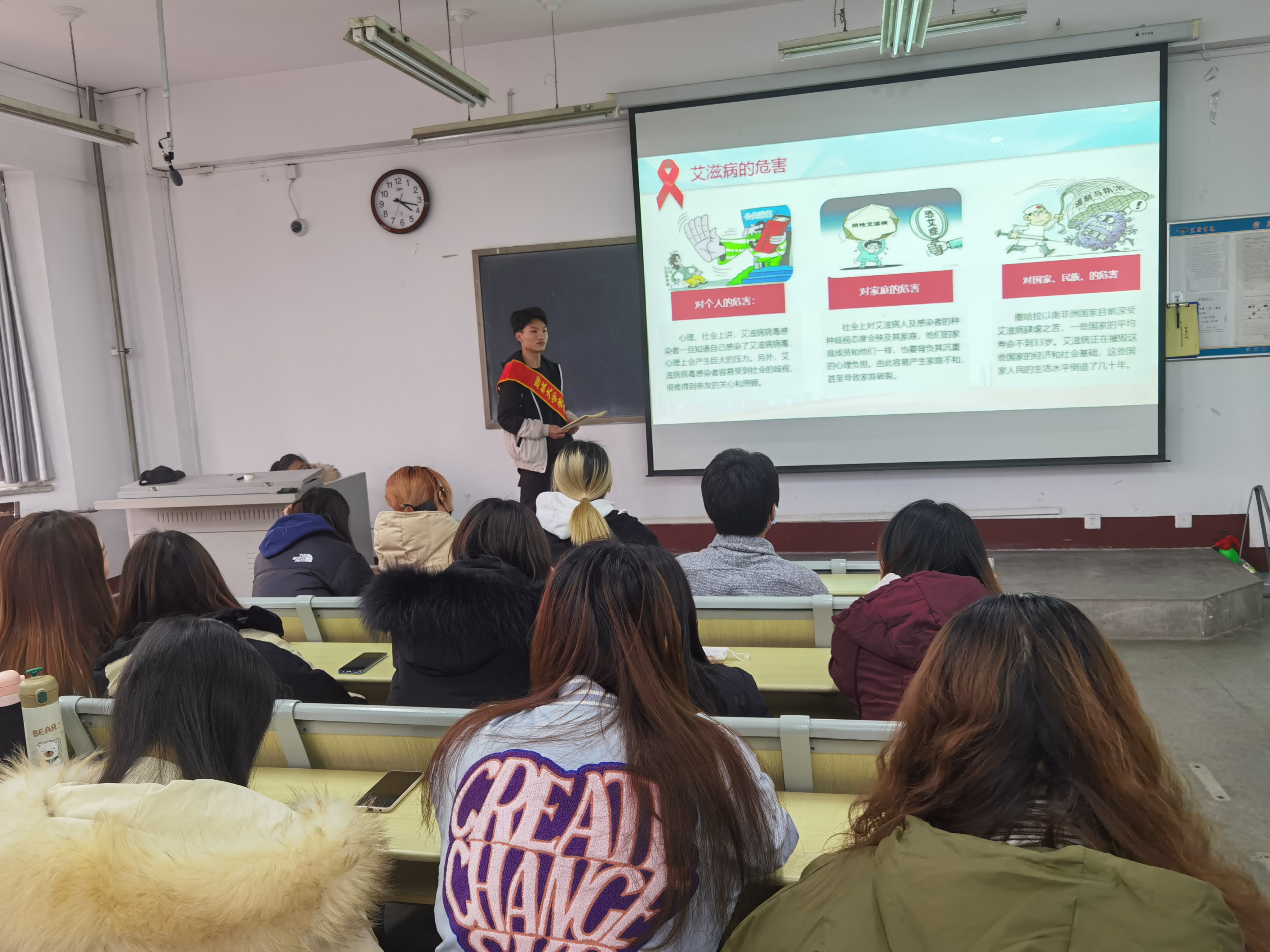 知艾”才能更好“防艾”,本次活动的顺利进行,旨在帮助员工了解艾滋病的由来、传播途径,预防措施、危害等有关知识,向同学们普及健康知识与技能,增强同学们预防意识和自我保护能力。号召同学们共同创设干净整洁的校园环境,为关爱健康、创设维护和谐校园贡献一份力量。