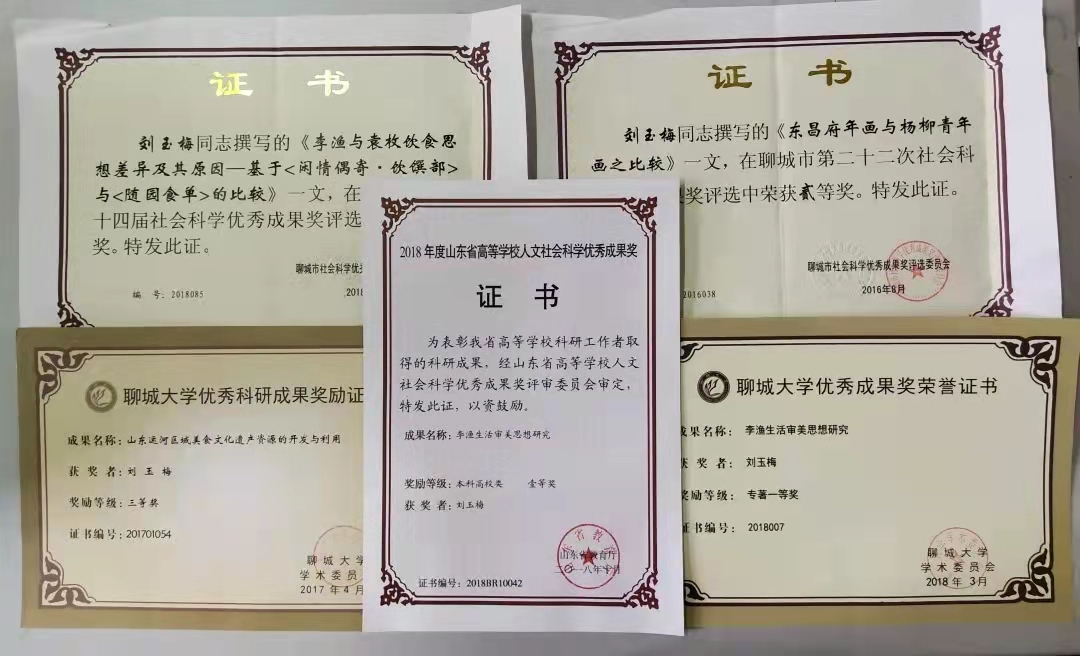 近年来,出版著作六种(合著),发表论文二十余篇,主持和参与纵横向课题三项,发明专利两项,外观设计专利两项,实用新型专利一项。曾获国际艺术和平展艺术和平大使称号,美国迪贝艺术家协会荣誉奖,中韩现代广告海报设计大赛铜奖,艺术百家年度作品奖三等奖,第三届山东省文化创新奖,山东省优秀书法作品展入展奖,oety欧亿体育官网哲学社会科学优秀成果二等奖。