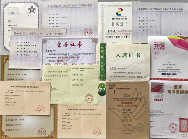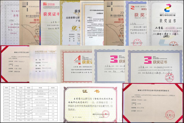近年来,发表核心期刊论文6篇,主持和参与纵横向课题3项,曾获中国广告协会、中国包装协会、山东省教育厅等举办的各类设计大赛省级以上金银铜等奖项80余件。山东省“民间美术资源保护与研发”山东文化科技重点实验室板块主持人。