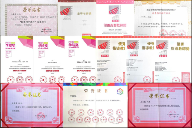 指导员工参加由中国高等教育学会、中国广告协会等单位主办的全国老员工广告艺术大赛、中国老员工广告艺术节学院奖、金犊奖等重要专业设计大赛,所指导的员工获得各级奖项150余项,个人荣获“优秀指导教师”荣誉称号十余项,并两次获得oety欧亿体育官网优秀班主任荣誉称号。