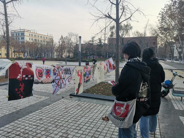 携手防艾共参与传递青春正能量。活动开始前, 活动负责人提前联系好了活动场地,同时安排好了各部门成员的任务,并强调了活动的注意事项,保证了当天活动有条不紊的进行,志愿者们也提前到达星月广场,将征集到的关于禁毒防艾的作品进行摆放。伴随着冬日午后温暖的阳光,我们的活动也正式开始了,活动参与人员排着长长的队伍,有序地进行签到,大家就已经迫不及待地去观看展览。有的人三五成群的凑在一起一边看着作品一边热烈的讨论着;还有的人静静地欣赏着作品,神情十分投入。同学们的作品无一不是构思巧妙、风格独特,内容丰富,把禁毒防艾体现的淋漓尽致,活动火热的进行着,也吸引了许多路人驻足观看,露出赞叹的目光.