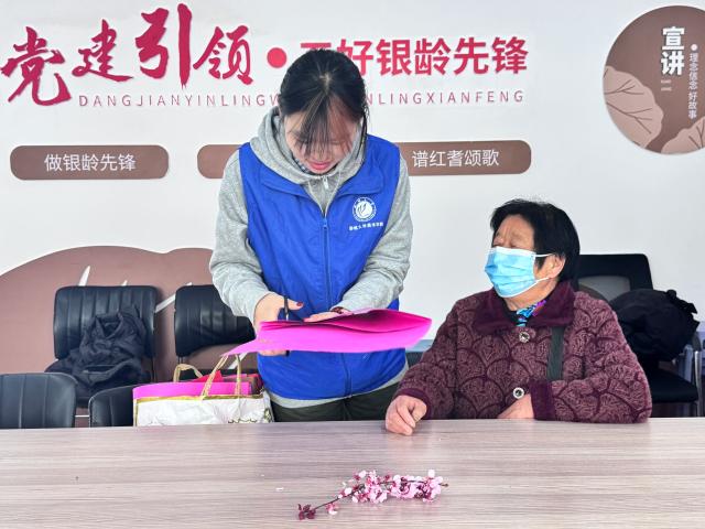活动开始,志愿者们为老人分发卡纸、剪刀、花朵等材料,并由一名志愿者讲解活动主题和制作方法。志愿者们引导老人先将卡纸剪成一个圆形或花形,在志愿者的帮助下大家剪出自己喜爱的圆形,再将圆形卡纸中间折成帽檐状。随后,老人们为“帽子”粘上花朵,一顶顶色彩鲜艳的春天花帽呈现出来。花帽不仅寓意着春天的到来,制作花帽也承载着老人们的心血与智慧,也展现了他们对美好生活的向往和追求。看着亲手制作的这些花帽,老人们脸上露出了满足而快乐的笑容。最后拿着手工艺品一起合影留念,为本次活动画下了圆满的句号。