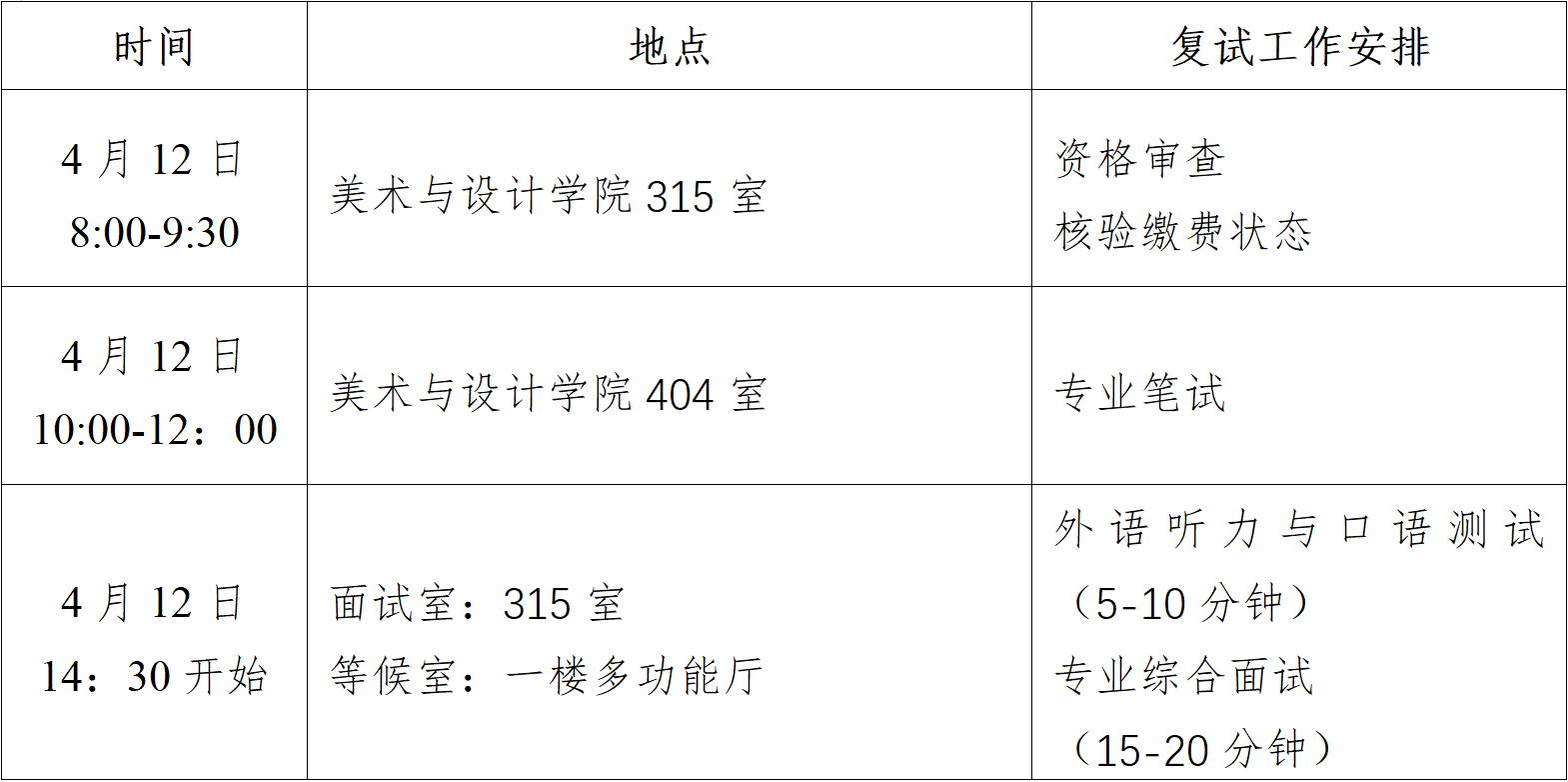 复试缴费、复试资格审核、复试内容以及调剂基本要求、调剂程序、录取规则等相关要求,详见《oety欧亿体育官网美术与设计公司2025年硕士研究生复试录取工作方案》。