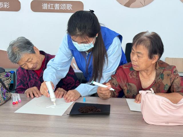 活动伊始,志愿者为老人们分发卡纸、画笔、胶水等材料,并由一名志愿者讲解活动内容和制作过程。老人们现在卡纸上画下自己喜欢的图案,随后,志愿者引导老人们顺着图案边框涂上胶水,再将咖啡渣粘到胶水以及图案上。在志愿者的帮助下清理掉多余的咖啡渣,呈现出一幅幅咖啡渣沙画。一幅幅生动多彩的画作,不仅将低碳循环利用以及变废为宝展现出来,而且也承载着老人们的心血和创意,展现出老人们对美好生活的热情和丰富多彩的想象。看着一张张精美的画作,老人们露出了灿烂的笑容。最后,拿着画作一起合影留念,为本次活动画下了圆满的句号。