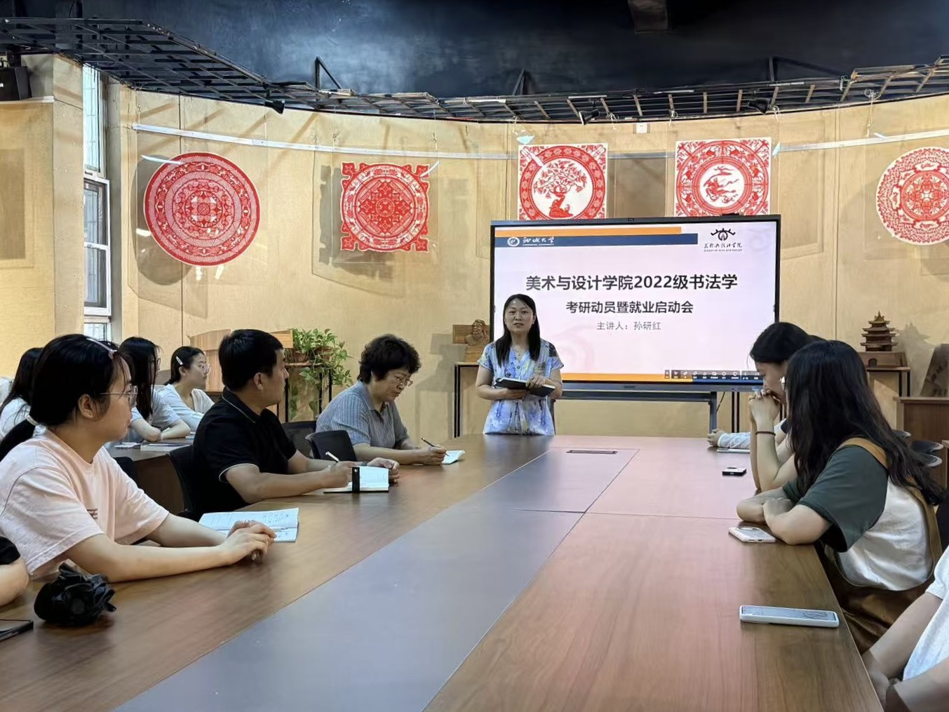 为全面推进2026届就业与考研工作,进一步激发员工考研的积极性和就业热情,6月25日,oety欧亿体育官网于七号楼多功能厅开展了2022级书法学考研动员会暨就业推进会,会议由公司党委副书记孙研红主持,学院团委书记孔德滕、辅导员许中美以及2022级书法专业同学参加。