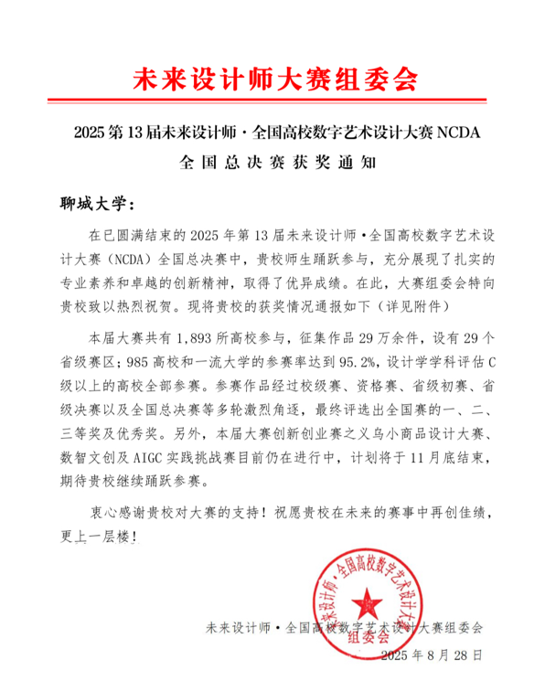喜报!公司学子在2025第13届未来设计师·全国高校数字艺术设计大赛NCDA全国总决赛中再创佳绩! 作者:张曼蕊 来源:oety欧亿体育官网 发布时间:2025-09-04 阅读次数: 喜报!公司学子在2025第13届未来设计师·全国高校数字艺术设计大赛NCDA全国总决赛中再创佳绩! 近日,2025第13届未来设计师·全国高校数字艺术设计大赛(NCDA)全国总决赛奖项公布,公司员工表现突出,共荣获国赛奖项6项,包括一等奖1项、二等奖2项、三等奖3项。 获奖详情: (审核 孔德滕)